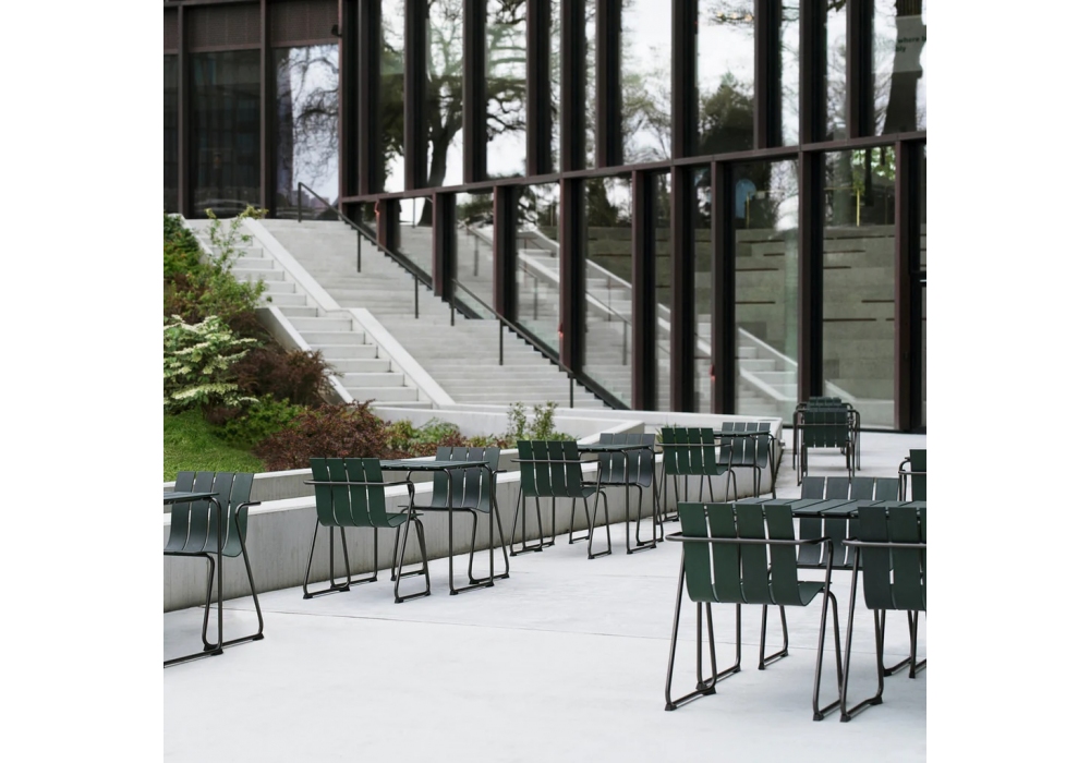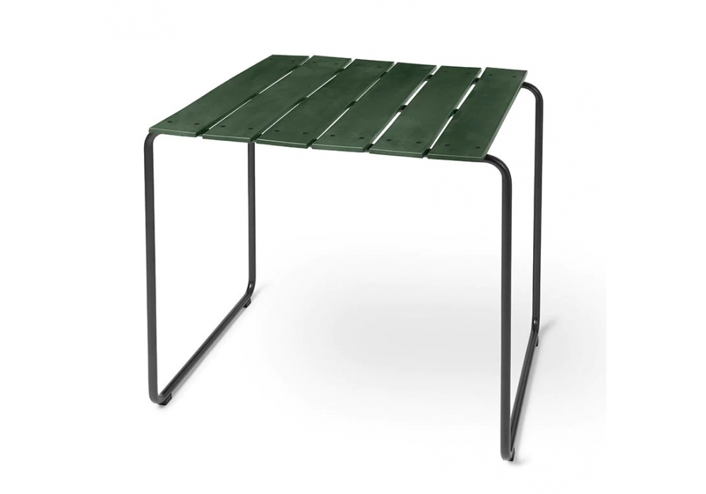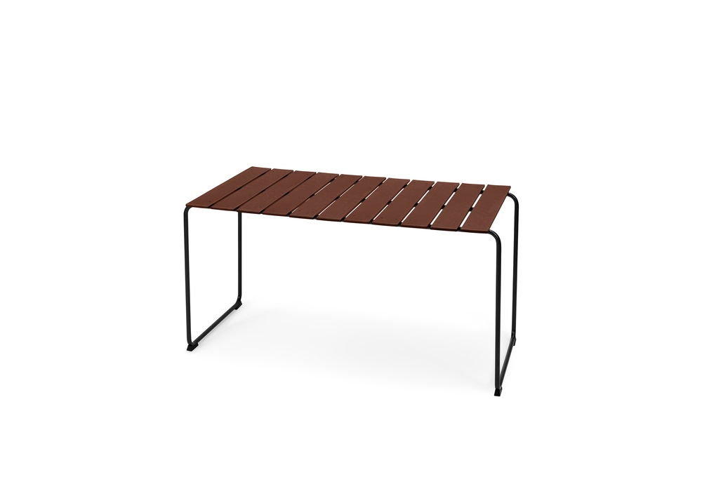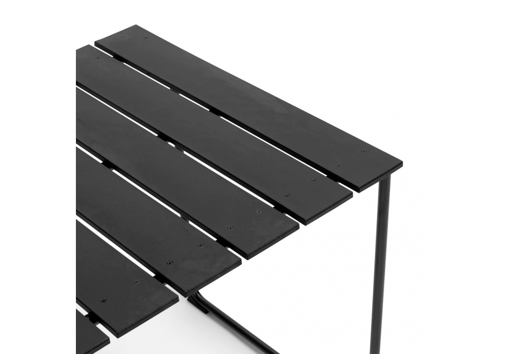 Ocean, entworfen von Joergen und Nanna Ditzel für Mater, ist ein Tisch aus der Ocean-Kollektion mit Tischen und Stühlen aus recyceltem Kunststoff aus Meeresabfällen. Die Serie zeichnet sich durch ihre leichte Struktur mit wiederholten Lamellen und Metallrahmen aus, die für den Außenbereich hergestellt und getestet wurden.