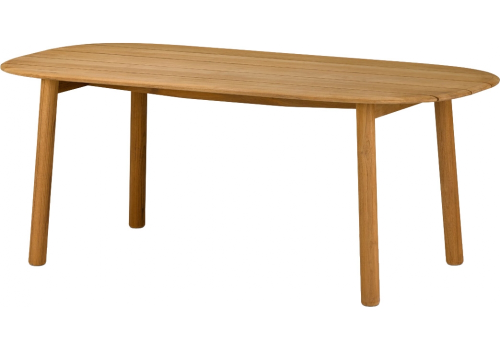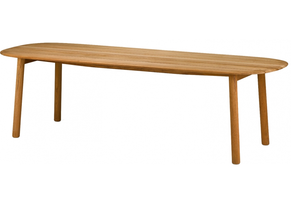 Mbrace, entworfen von Sebastian Herkner für Dedon, ist ein Tisch aus der Outdoor-Kollektion aus Teakholz. Erhältlich in zwei Dimensionen.