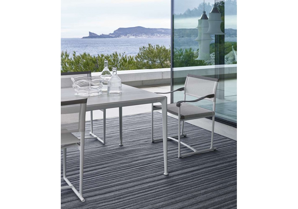 Mirto von Antonio Citterio für B&B Italia Outdoor entworfen, ist ein Tisch mit Aluminiumgestell und Platte aus Porzellan-Steinzeug. Verfügbar in mehreren Abmessungen.