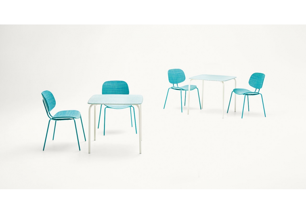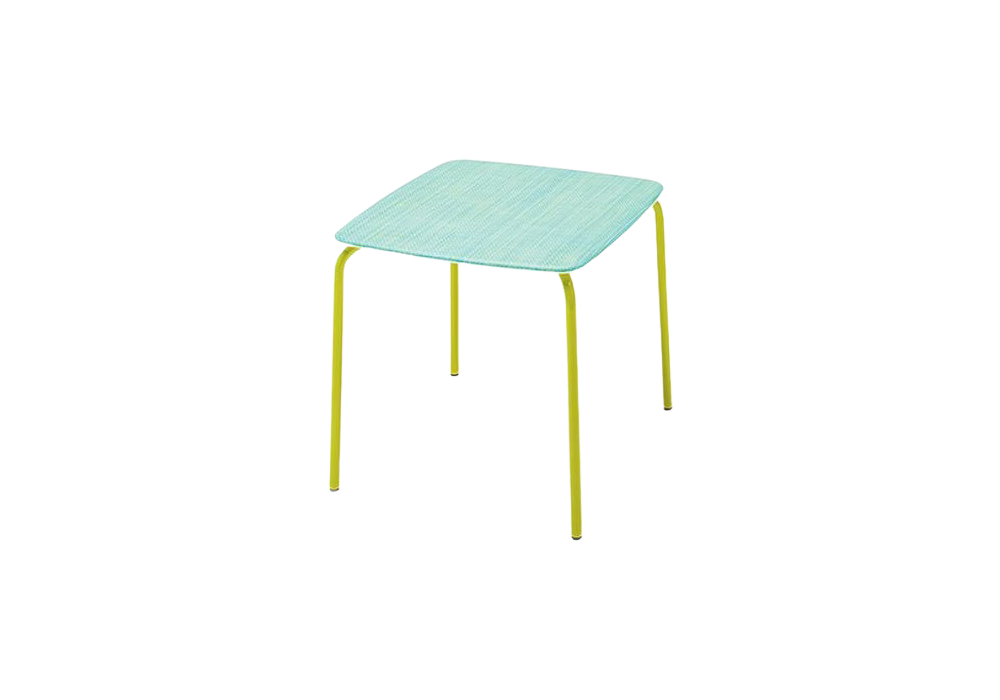 Lido von Francesco Rota für Paola Lenti entworfen, ist ein Tisch mit Sockel aus poliertem lackiertem Edelstahl AISI 304 in verschiedenen Farben. Die Oberseite ist in Diade mit einer weißen, grünen oder blauen Basis gepaart mit Tela-Stoff oder mit einer weißen, grauen, grünen oder blauen Basis gepaart mit Maris-Stoff bedruckt.