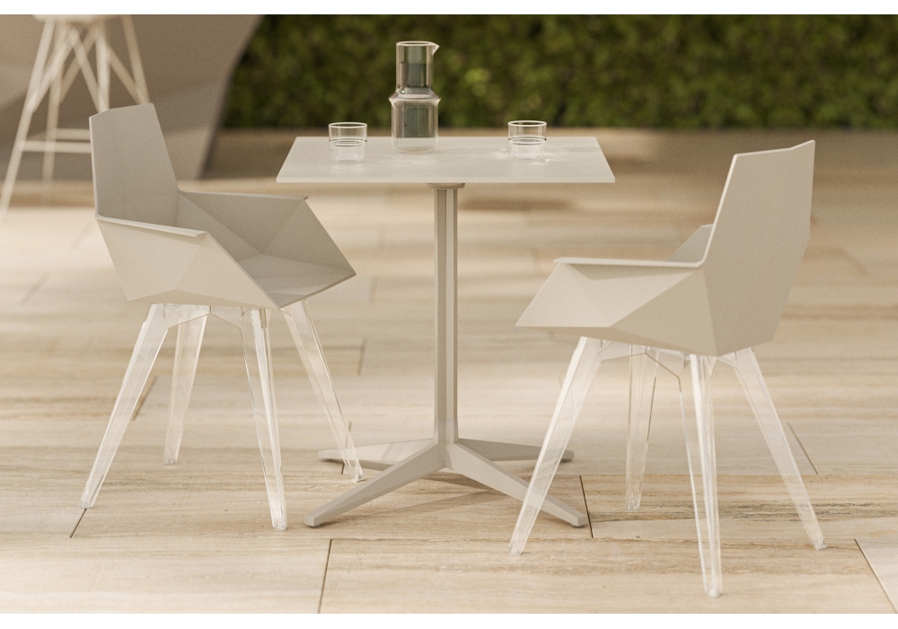 Faz von Ramón Esteve für Vondom entworfen, ist ein Tisch mit Aluminiumbasis und Platte aus HPL-, Glas- oder Dekton-Keramik. Verfügbar in mehreren Ausführungen und Abmessungen.
