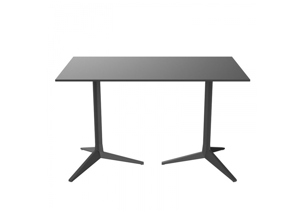 Faz von Ramón Esteve für Vondom entworfen, ist ein Tisch mit doppelter Basis aus lackiertem Aluminium und Platte aus HPL- oder Dekton-Keramik. Verfügbar in mehreren Ausführungen und Abmessungen.