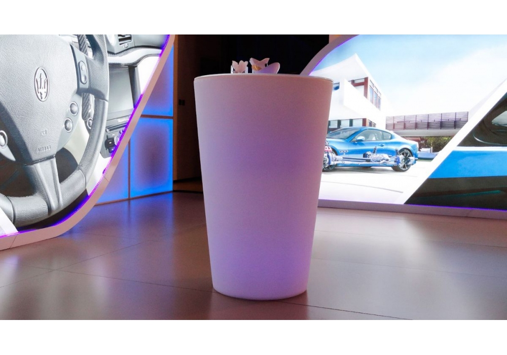 Pint von Slide Studio für Slide entworfen, ist ein Tisch mit minimalistischem Design mit einer konischen Basisform mit einer runden Platte aus gehärtetem Glas. Erhältlich in hellweißer Version und in verschiedenen Ausführungen