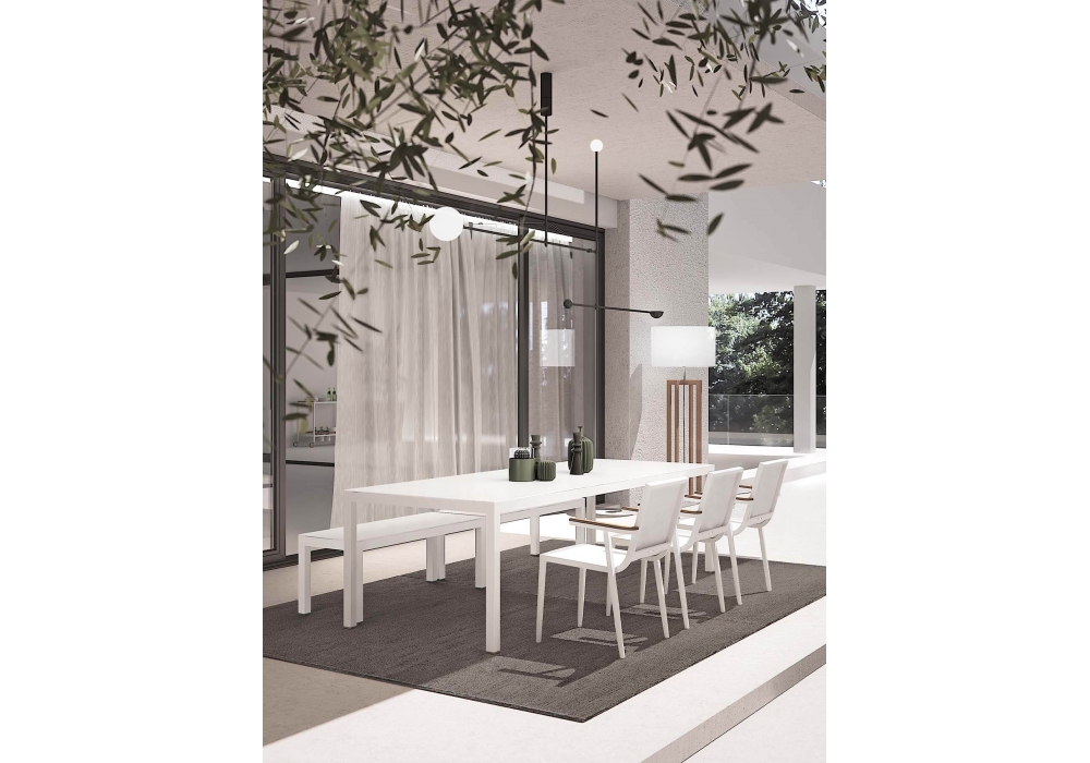 Flair von Atmosphera Creative Lab entworfen, ist ein Gartentisch mit Aluminiumbasis und Platte aus HPL oder Gress. Es ist in verschiedenen Größen erhältlich.