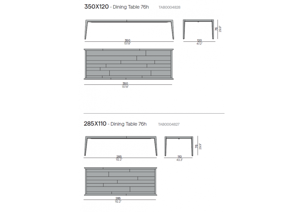 | Abmessungen | - 350 x 120 x H 76 cm; - 285 x 110 x H 76 cm. |