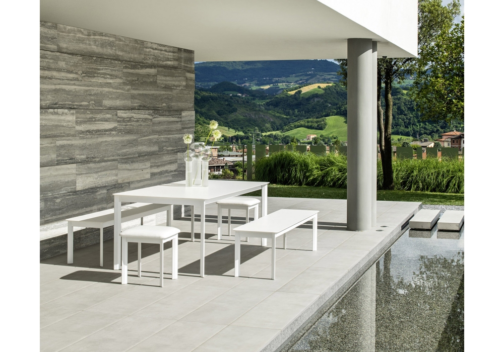 System von Daniele Lo Scalzo Moscheri für Varaschin entworfen, ist ein Tisch mit Struktur aus pulverbeschichtetem Aluminium und Platte aus HPL oder Keramik. Erhältlich in verschiedenen Ausführungen und in verschiedenen Größen.