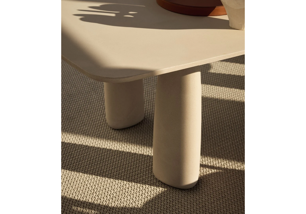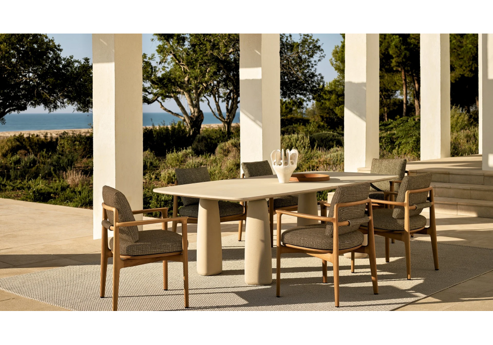 Monolith Outdoor von Emmanuel Gallina für Poliform entworfen, ist ein Tisch, der vollständig aus Cementoskin® und einem Rahmen aus lackiertem Edelstahl besteht.