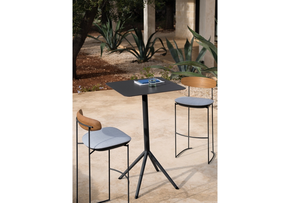 OTX von Gabriele und Oscar Buratti für Potocco entworfen, ist ein Hoher Tisch für den Außenbereich in runder oder viereckiger Form mit einem in verschiedenen Ausführungen lackierten Metallgestell und einer HPL-Platte. In verschiedenen Abmessungen erhältlich.