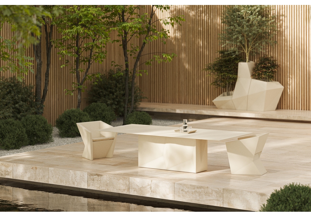 Faz von Ramón Esteve für Vondom entworfen, ist ein Tisch aus Polyethylenharz durch Rotationsformen. 100 % recycelbar. Geeignet für den Innen- und Außenbereich. Verfügbar in mehreren Ausführungen.