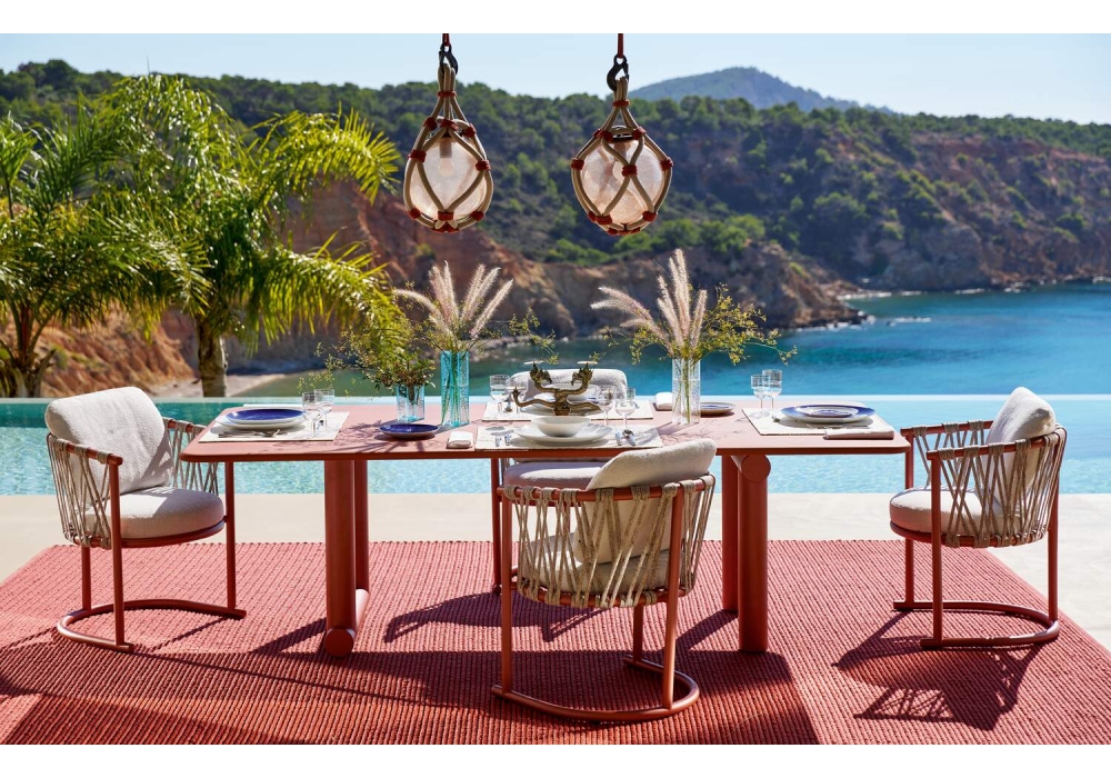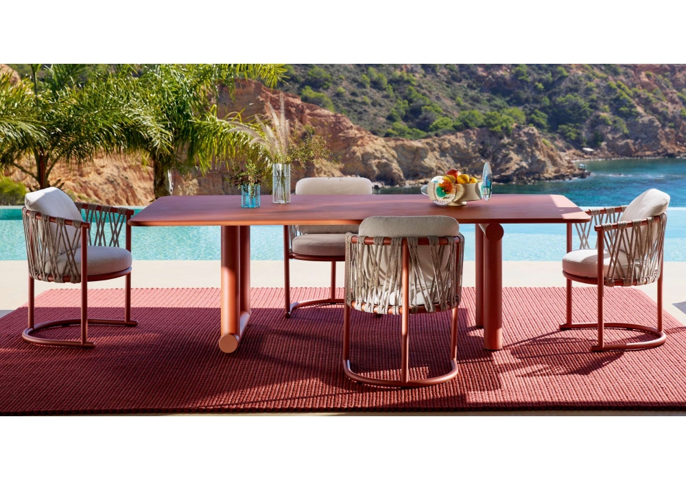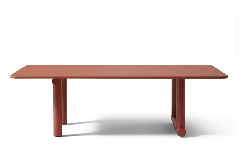 Trampoline von Patricia Urquiola für Cassina entworfen, ist ein Tisch mit einem geprägten lackierten Metallgestell und einer Marmor- oder Betonplatte. Verfügbar in mehreren Ausführungen und Abmessungen.