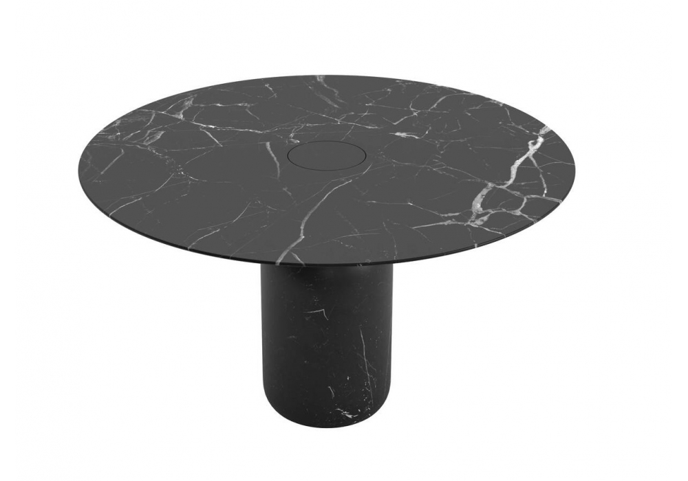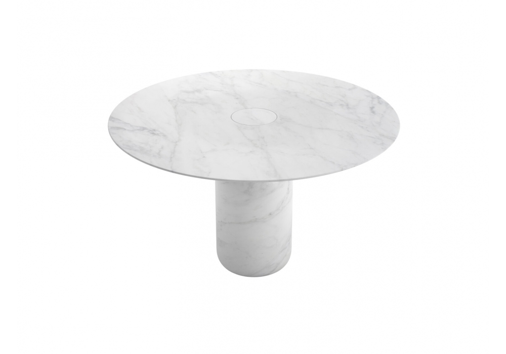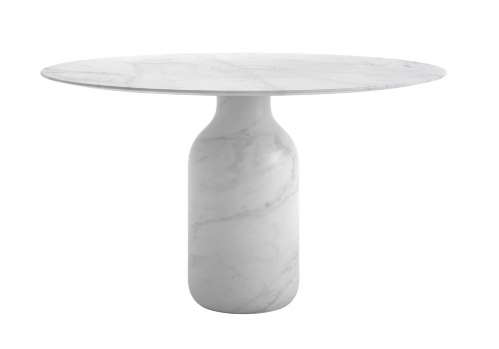 Bottle Lido von Edward Barber & Jay Osgerby für Cappellini entworfen, ist ein Gartentisch ganz aus Marmor mit runder Tischplatte. Zwischen Untergestell und Tischplatte sind freie Farbkombinationen möglich.