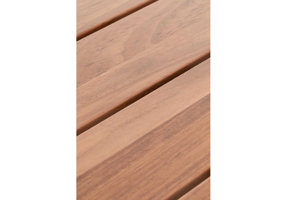 Onsen Tisch von Francesco Meda und David Quincoces für Gandia Blasco entworfen, besticht durch seine Iroko-Holzlatten und einen schlanken, durchgehenden Edelstahlrahmen mit abnehmbaren Beinen, die ihm ein minimalistisches und vielseitiges Design verleihen. Erhältlich in verschiedenen Ausführungen.