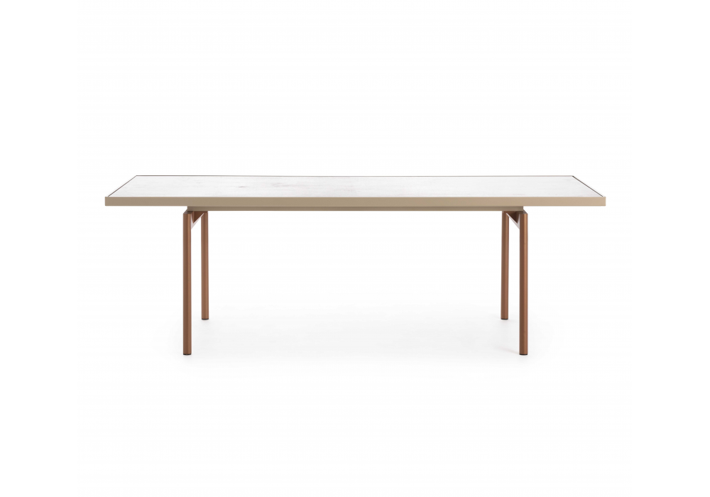 Onde von Luca Nichetto für Gandia Blasco entworfen, ist ein Table aus pulverbeschichtetem Aluminium und einer Platte aus Porzellan oder MDi/MVi. Verfügbar in verschiedenen Ausführungen.