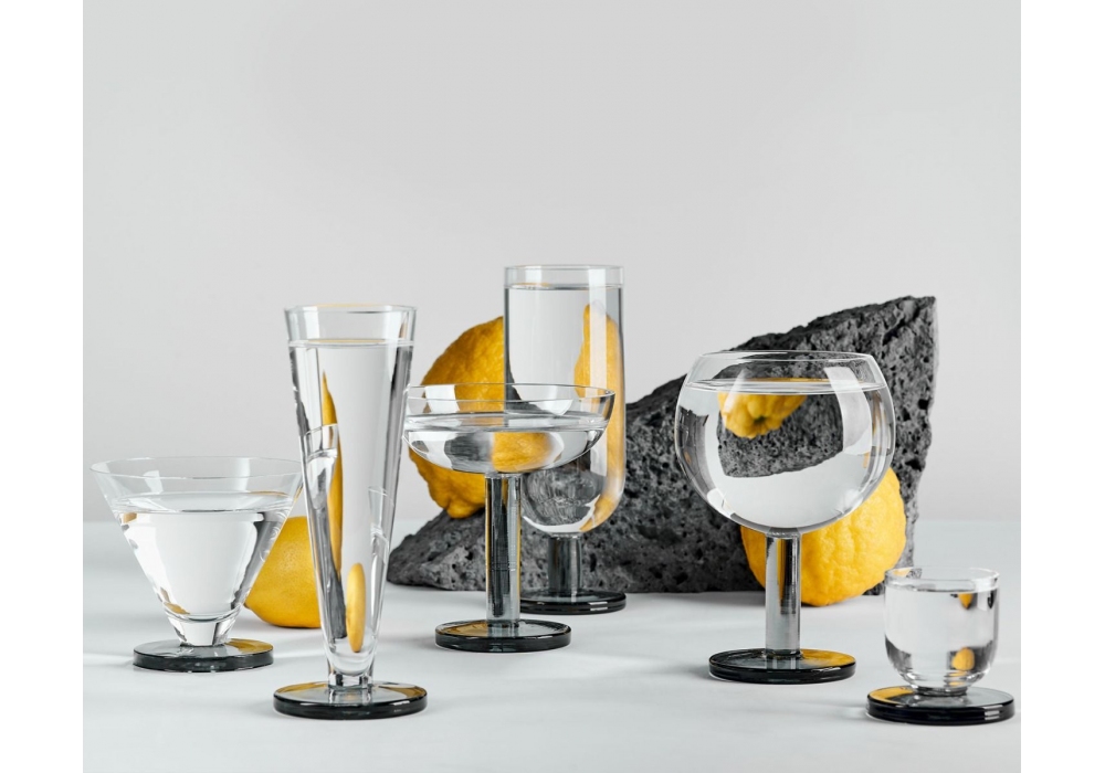 Puck Balloon von Tom Dixon entworfen, ist ein Set bestehend aus zwei Gläsern aus mundgeblasenem Glas mit einem hellen Rauchton.