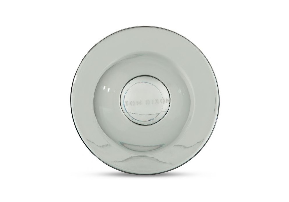 Puck von Tom Dixon entworfen, ist ein Set bestehend aus vier Schnapsgläsern aus mundgeblasenem Glas mit einem hellen Rauchfarbton.