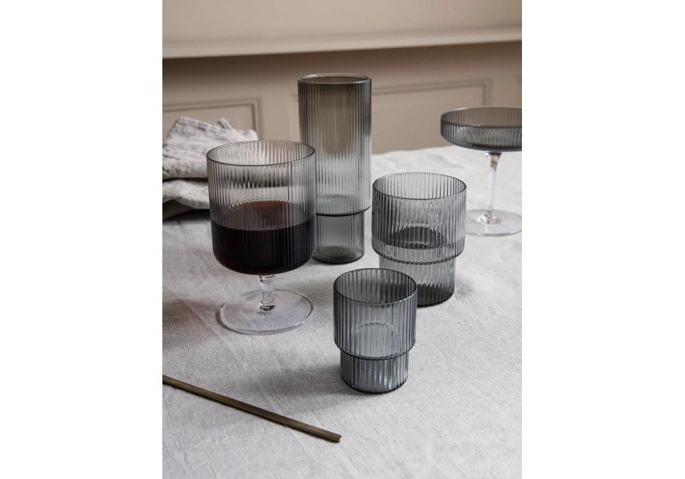 Ripple von Ferm Living entworfen, ist ein mundgeblasenes Set aus 4 Gläsern. Füllen Sie Wasser, Saft oder Ihr Lieblingsgetränk ein und verwenden Sie die passende Karaffe zum stilvollen Servieren.