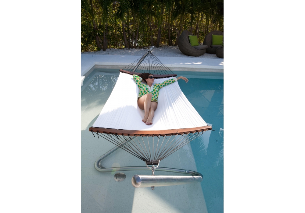 Airlounge von Tuuci entworfen, ist eine Hängematte mit Struktur aus Edelstahl, verfügbar in 2 verschiedenen Ausführungen: weiß oder schwarz. Das Stretchmaterial garantiert bequemes Liegen, und das einzigartige Design ist ebenso formschön wie strapazierfähig durch Ultra Dry-Core Comfort Mesh.