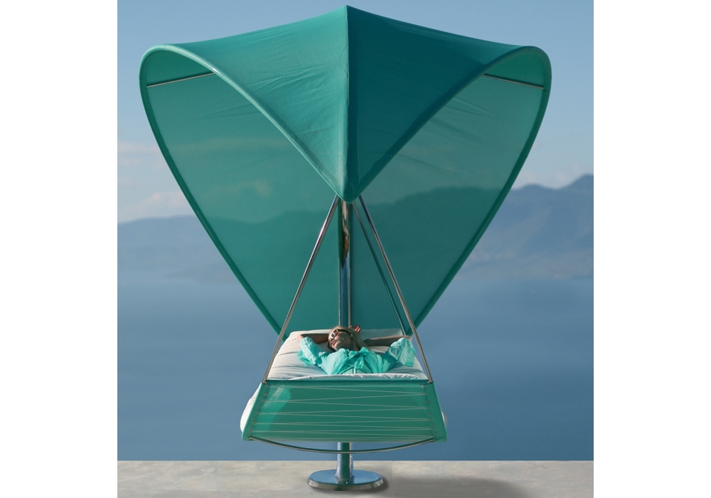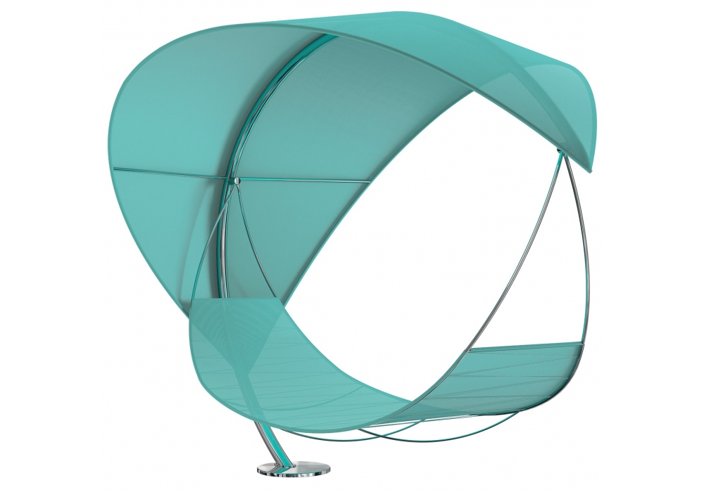 Wave von Erik Nyberg & Gustav Ström ist eine Hängematte mit Struktur aus Edelstahl und Beschichtung aus Batyline®. Inklusive Kopfstützenpolster und Matratze aus verschiedenen Stoffen. Basis verfügbar in 2 Modellen.