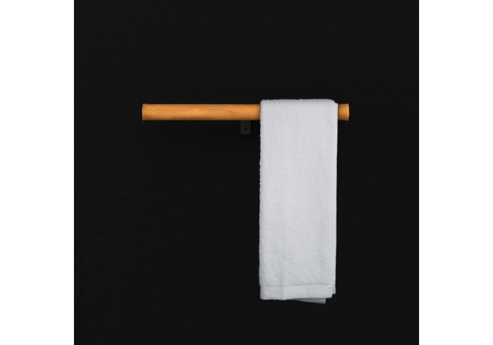 Twig, von Keiji Takeuchi für Boffi entworfen, ist einer Toilettenpapier Halterung mit Handtuchhalter aus Iroko Massivholz und Unterstützung in Edelstahl grau (PVD-Behandlung).