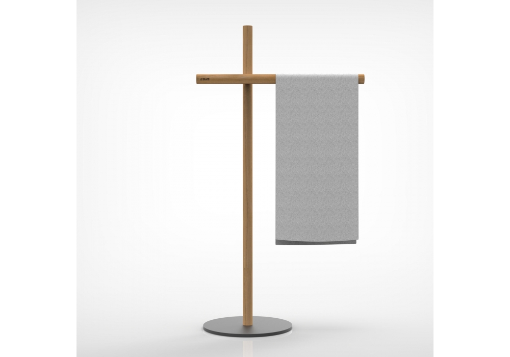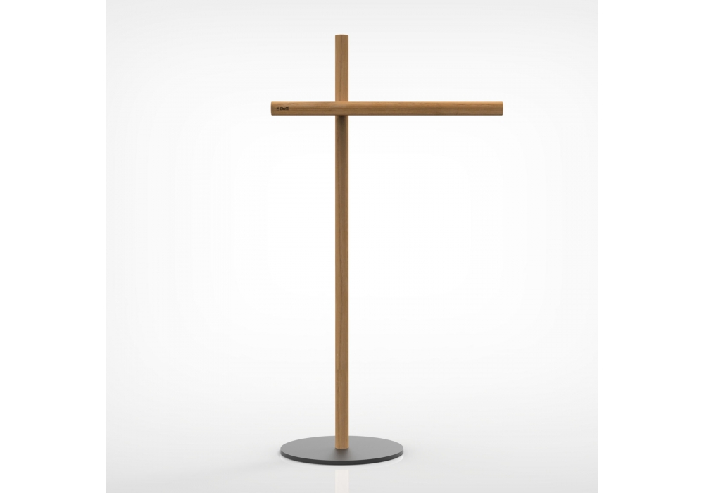 Twig, von Keiji Takeuchi für Boffi entworfen, ist einer Freistehender Handtuchhalter aus Iroko Massivholz und Boden aus Edelstahl grau (PVD-Behandlung).