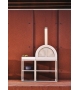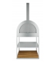 Der von Broberg & Ridderstråle für Röshults entworfene Wood Oven ist ein Holzofen mit einer Struktur aus Edelstahl und einem herausnehmbaren unteren Regal aus Teakholz. Auf Anfrage ist es möglich, seitliche Stützstrukturen hinzuzufügen.