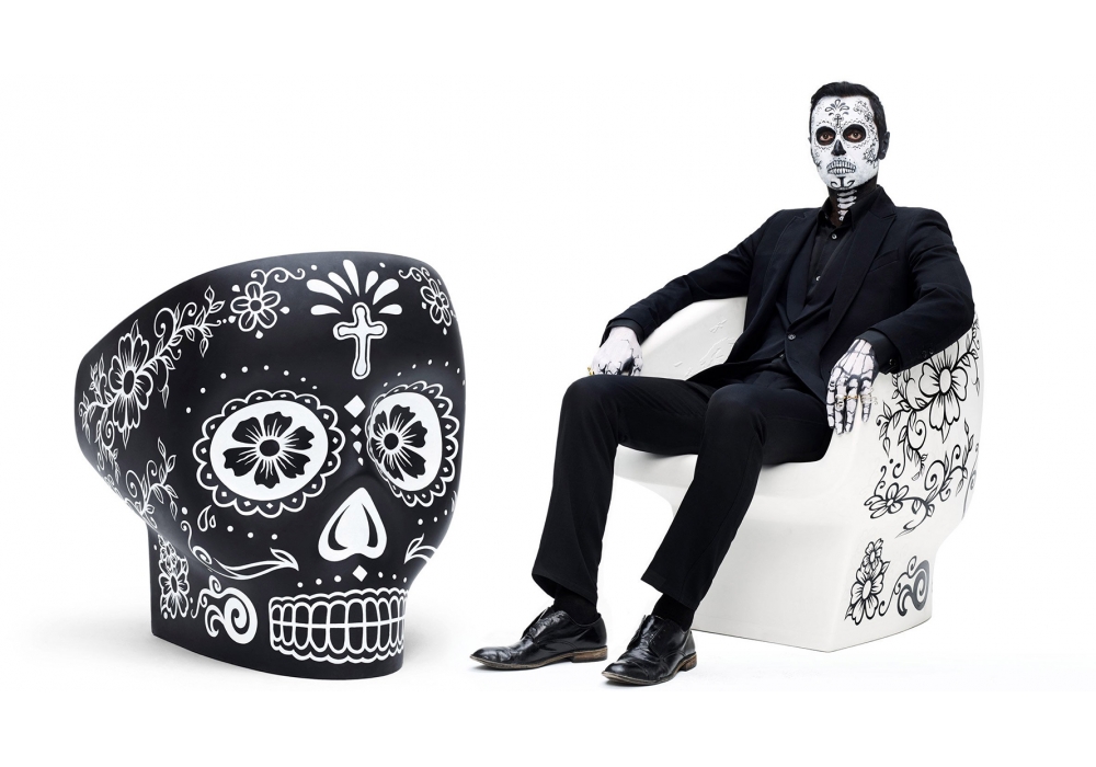 Jolly Roger Calavera von Fabio Novembre für Gufram ist eine limitierte Auflage des Sessels Jolly Roger. Der Sessel ist aus rotationsgeformtem Kunststoff gefertigt und somit auch für den Außenbereich geeignet.