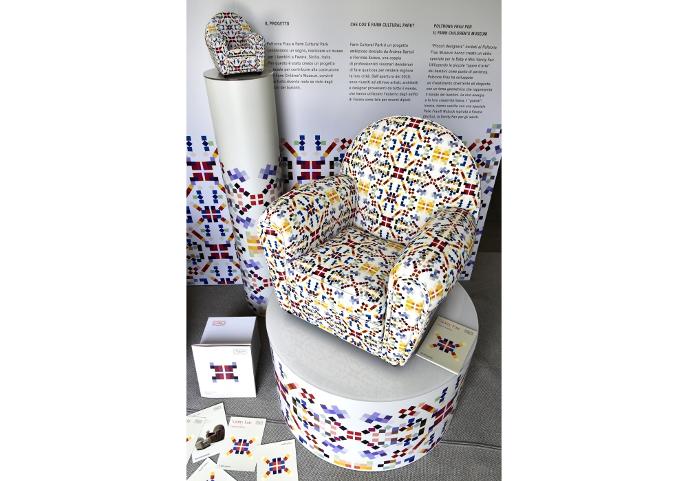Baby Vanity Fair, für Poltrona Frau entworfen, ist ein limitierter Kindersessel mit Bezug aus SOU. Mit Metallplatte.