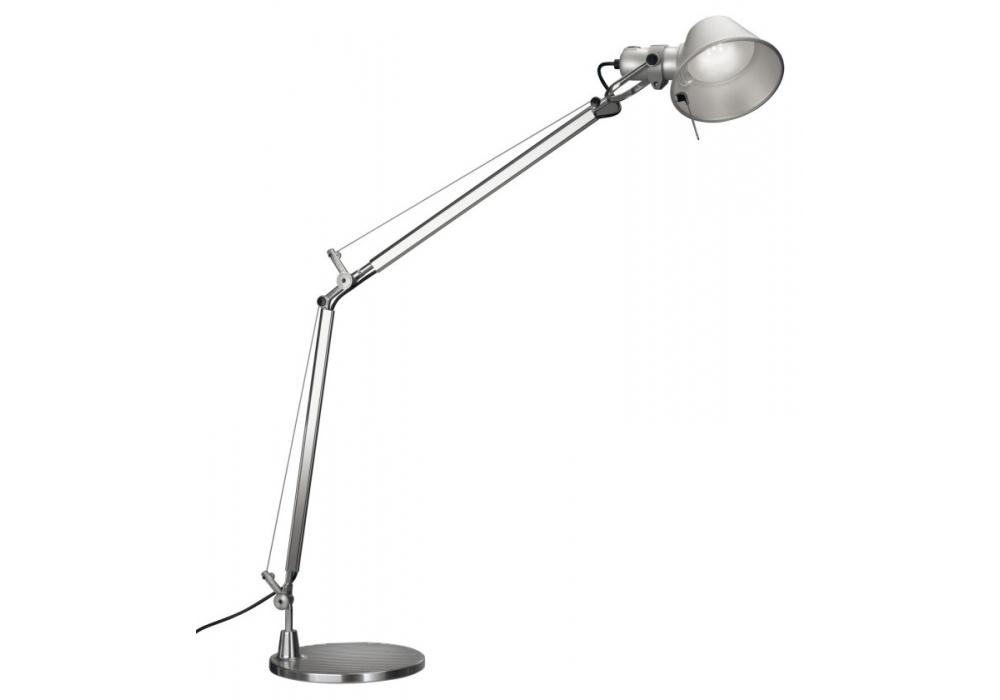 Tolomeo Mini Halo von Michele De Lucchi & Giancarlo Fassina für Artemide entworfen, ist eine Tischleuchte mit Ausrichtbarer Arm aus glänzendem Aluminium; Gelenke aus poliertem Aluminium; Schirm aus mattem Aluminium.