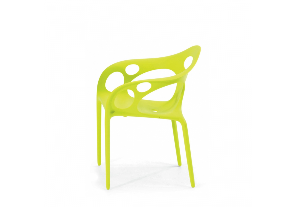 Supernatural von Ross Lovegrove für Moroso entworfen, ist ein stapelbarer Sessel aus spritzgegossenem glasfaserverstärktem Polypropylen. Verfügbar für den Außen- und Innenbereich.
