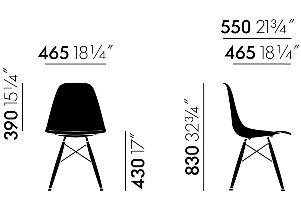 Eames Fiberglass Chair DSW, von Charles & Ray Eames für Vitra entworfen, ist einer Stuhl mit Schale aus glasfaserverstärktem Polyester und Untergestell aus schwarzer Ahorn. Erhältlich mit Schale in folgenden Farben: 01 Eames Parchment und 03 Eames Red Orange.