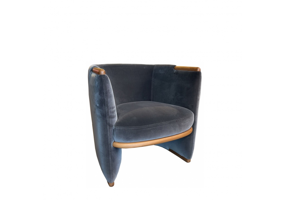 Opus von Carlo Colombo für Giorgetti entworfen, ist ein Sessel mit Einsätzen aus massivem Nussbaum Canaletto und Bezug aus Stoff.