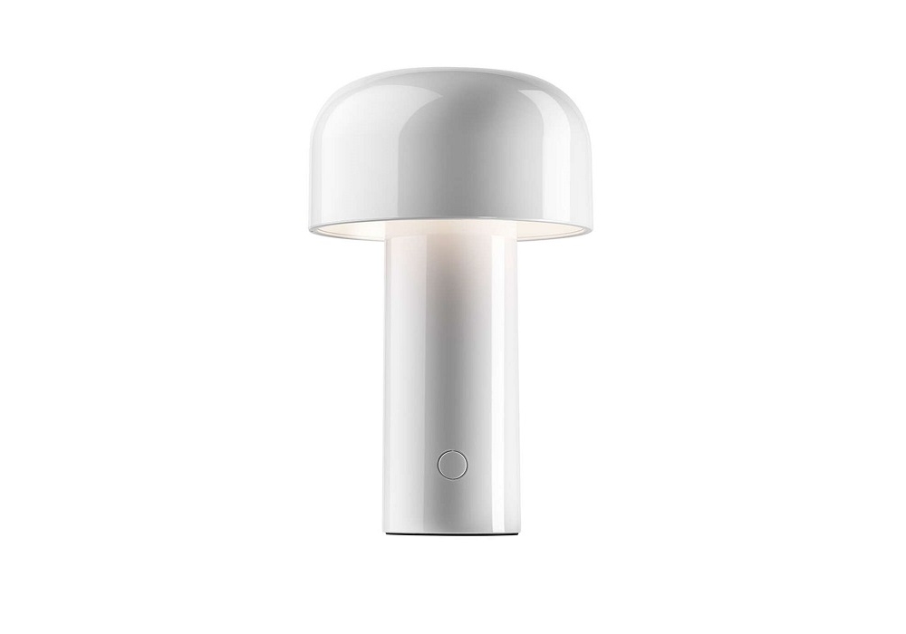 Bellhop von Edward Barber & Jay Osgerby für Flos entworfen, ist eine kabellose tragbare Tischleuchte aus Aluminium, die in mehreren Farben erhältlich ist. Max 24h Autonomie.