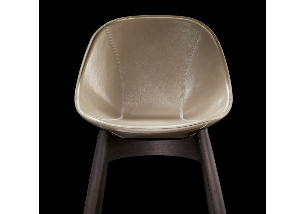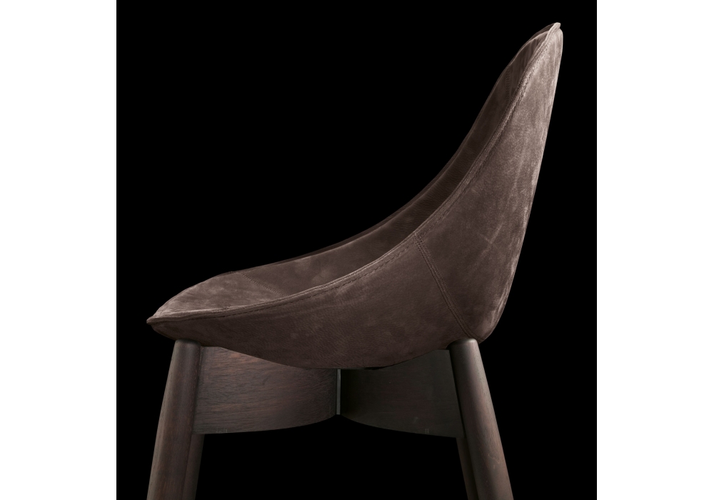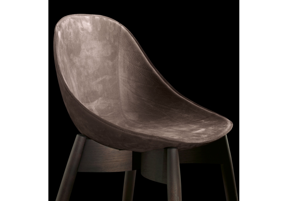 June Chair von Emmanuel Babled für Henge ist ein Stuhl mit Untergestell aus schwarzer Buche mit Eukalyptuslackierung. Shell mit Bezug aus Leder Nabuk.
