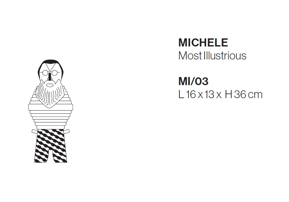 Most Illustrious Michele, von Elena Salmistraro für Bosa entworfen, ist eine Skulptur aus glasierter Keramik in hellblau mit weißem und schwarzem Unterteil. Most Illustrious ist eine Sammlung mit drei weiteren Skulpturen: Alessandro, Achille und Riccardo.