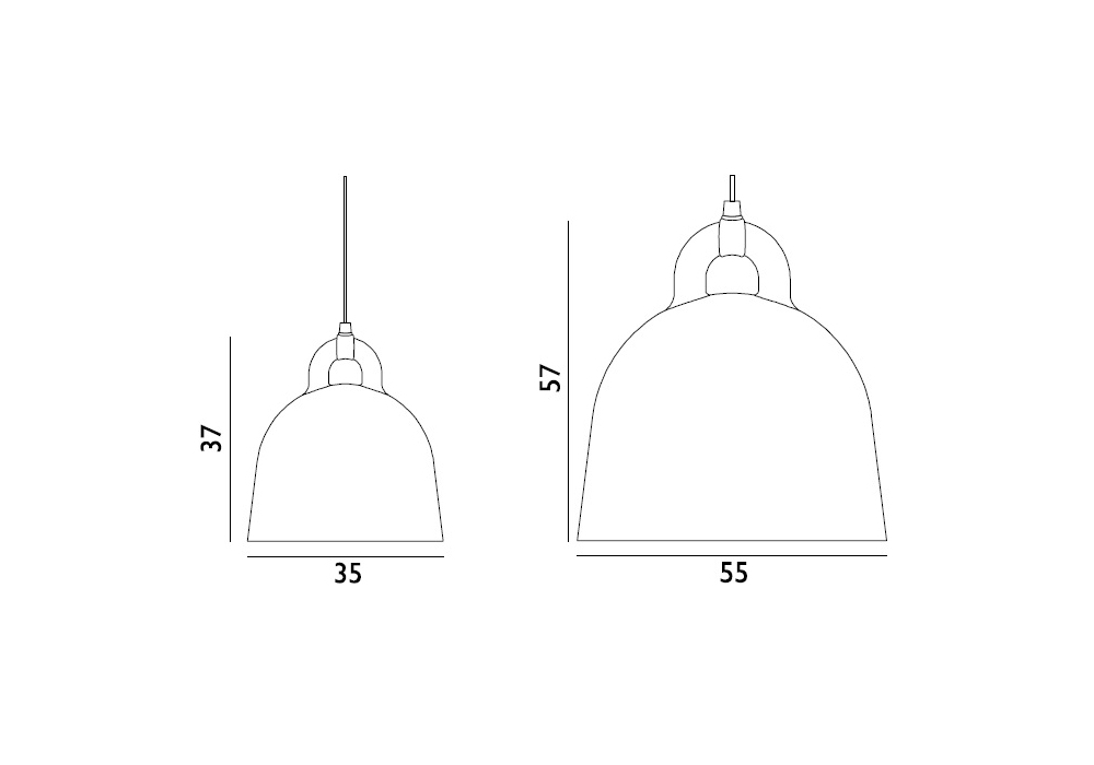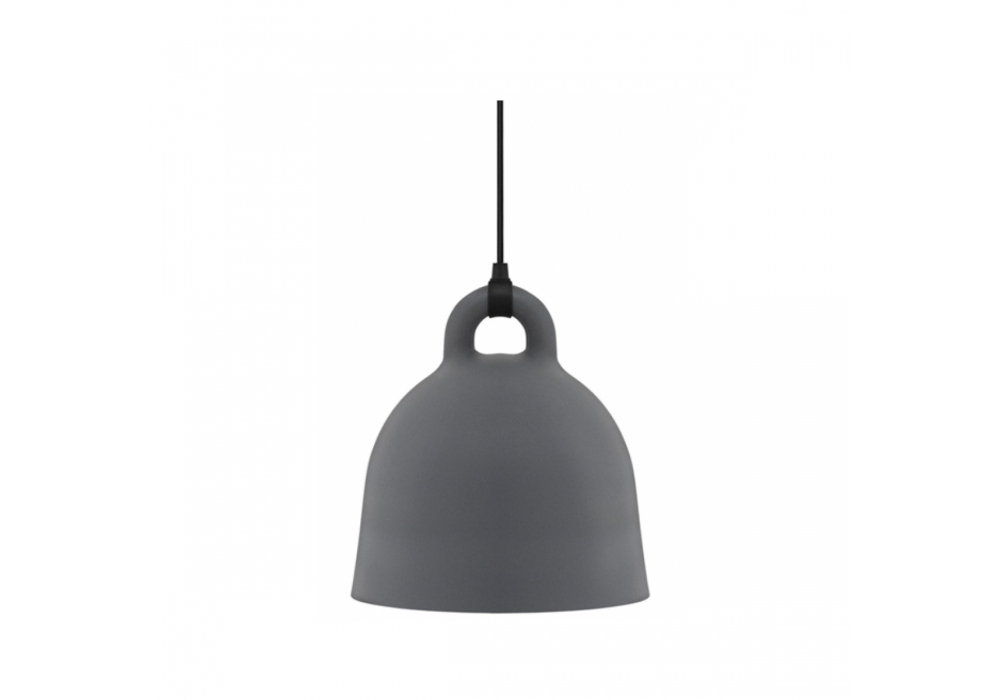 Bell von Andreas Lund & Jacob Rudbeck für Normann Copenhagen entworfen, ist eine Pendelleuchte mit ikonischer Glockenform. Verfügbar in den Farben Grau (Ø 55 x H 57 cm) oder Schwarz (Ø 35 x H 37 cm).