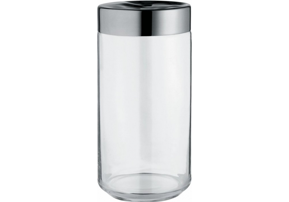 Julieta von Lluís Clotet für Alessi entworfen, ist eine Küchendose aus Glas mit abgedichtetem Deckel aus Edelstahl 18/10 glänzend poliert.