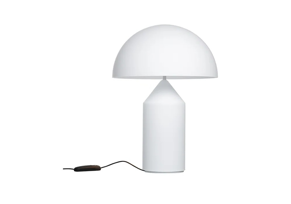Atollo von Vico Magistretti für Oluce entworfen, ist eine Tischleuchte aus Opalglas.