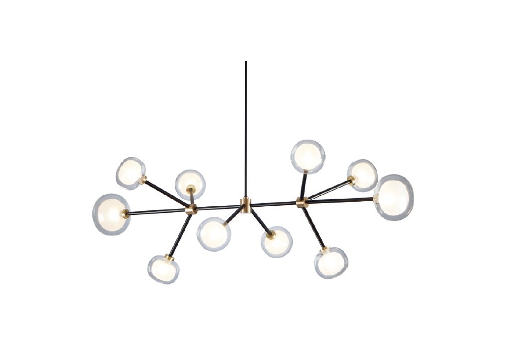 552 Nabila von Corrado Dotti für Tooy entworfen, ist ein Leuchter mit Struktur aus mattschwarzem Metall und Details aus gebürstetem Messing mit transparentem Glas. Glühbirnen nicht enthalten.