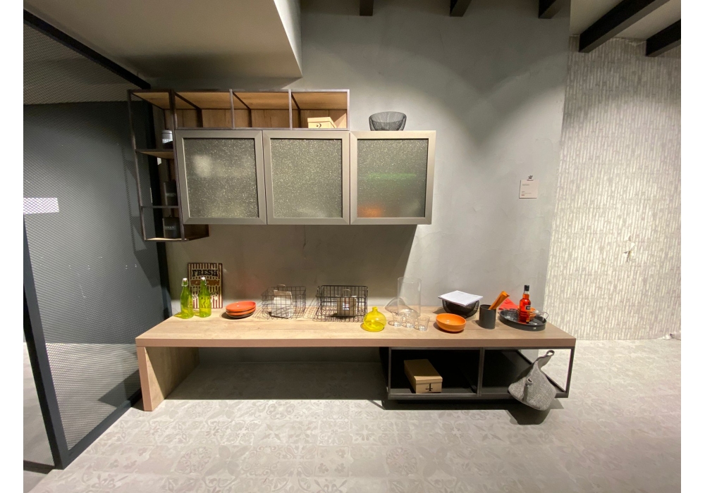 Loft von Michele Marcon für Snaidero entworfen, ist ein Wohnbereich Komposition mit einer Metallstruktur und einer Holzplatte.