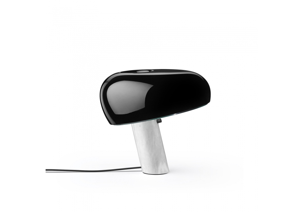 Snoopy von Achille & Pier Giacomo Castiglioni für Flos entworfen, ist eine Tischleuchte mit direktem Licht, lackiertem Metallreflektor und Marmorsockel. Integrierter Dimmer. Leuchtmittel nicht enthalten.