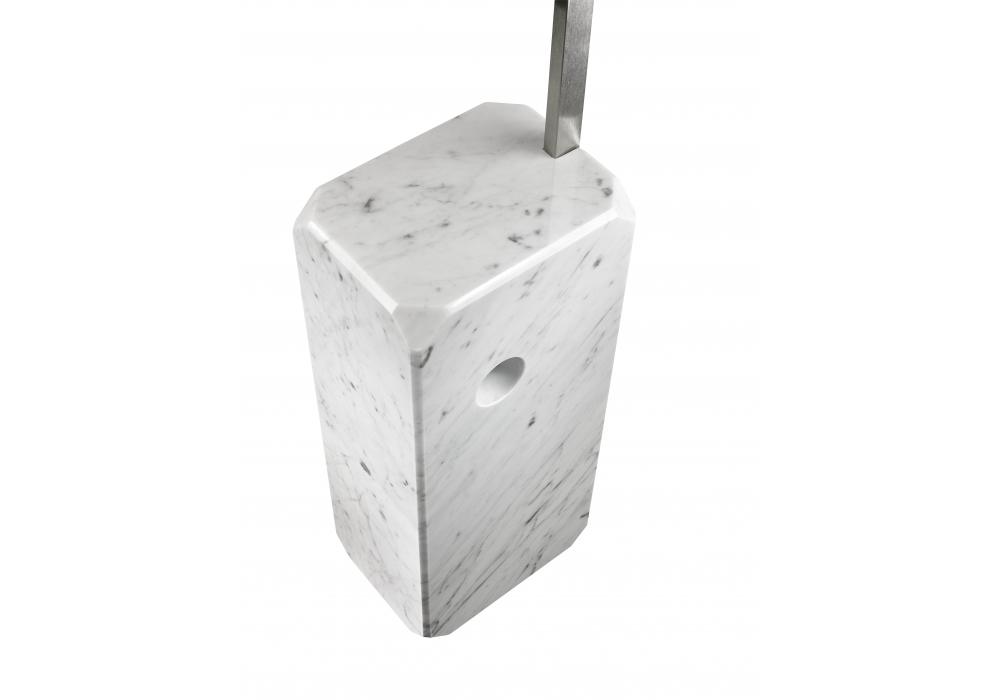 Arco LED von Achille & Pier Giacomo Castiglioni für Flos entworfen, ist eine Stehleuchte mit direktem Licht. Sockel aus weißem Carrara-Marmor. Teleskopstange aus satiniertem Edelstahl. Höhenverstellbarer Reflektor aus gestanztem, poliertem und zaponiertem Aluminium. Fernschalter inklusive. Multichip-LED-Leuchtmittel inklusive.