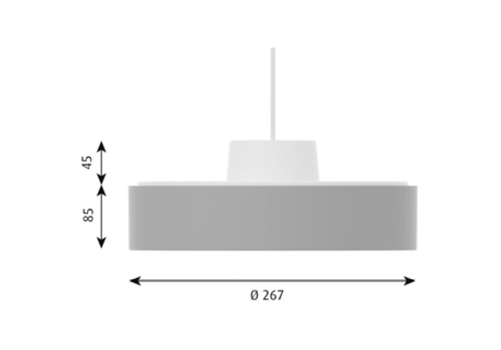 LP Circle von Mikkel Beedholm/KHR arkitekter für Louis Poulsen entworfen, ist eine Hängeleuchte, die über einen hocheffizienten Acryldiffusor diffuses Licht emittiert. Der Diffusor, der von einem voluminösen farbigen oder weißen Ring umgeben ist, ist aus niedrigen Winkeln verborgen. Wenn Sie die Innenseite des Rings um 5 ° abwinkeln, wird das Licht des Diffusors bequem und dekorativ abgestuft. Perforierter Körper beleuchtet diskret die anderen Komponenten der Leuchte.