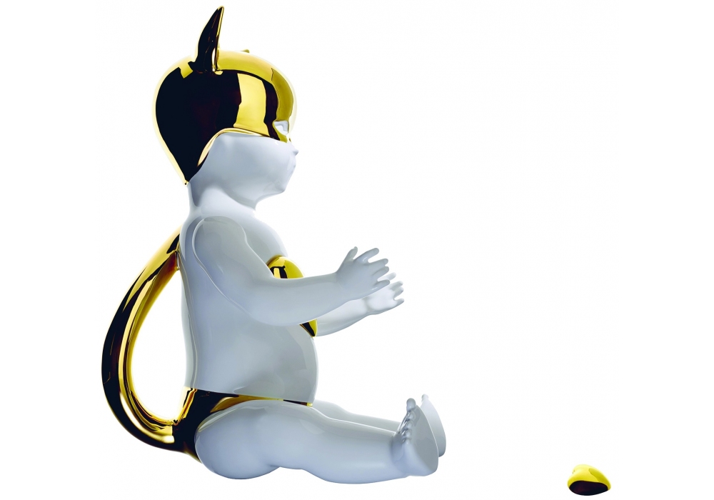 Oh, baby, it is a wild world, von Nika Zupanc für Bosa entworfen, ist eine Skulptur in weißer Keramik mit Details in glänzendem Gold, die den klassischen Puppenformen ähnelt, mit einem unerwarteten Design und bietet Emotionen mit Nostalgie. Es ist ein emotionaler Container, der Hüter der Dinge, die Wertvollste.
