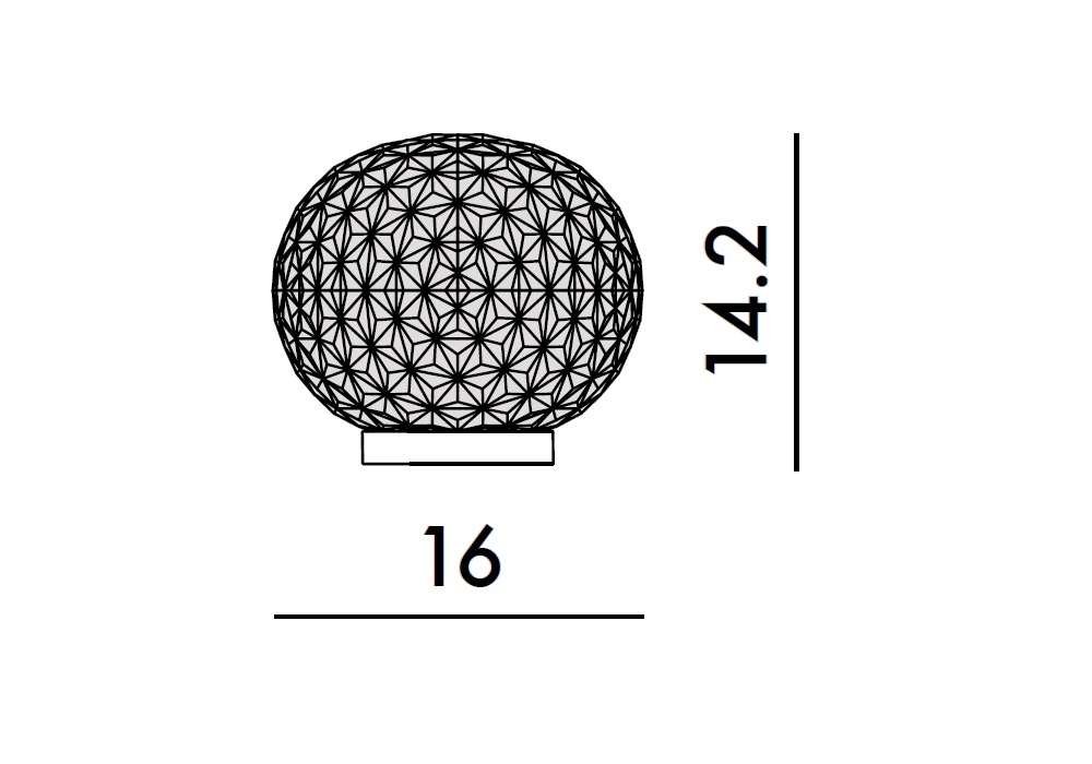 Mini Planet von Tokujin Yoshioka für Kartell entworfen, ist eine dimmbare Tischleuchte mit Batterie mit Struktur aus metallisiertem thermoplastischem Technopolymer und PMMA Diffusor.