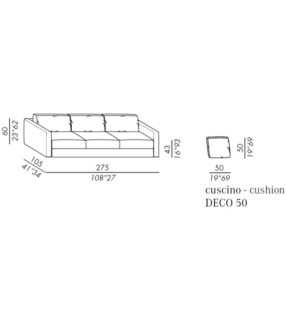 Harold von Andrea Parisio für Meridiani entworfen, ist ein 3-Sitzer Sofa mit Holzrahmen, nicht verformbarer Polyurethanpolsterung, schwarzen ABS-Füßen und Bezug aus Cat. Silver_ Cuzco/07 Stoff. Dekorative Kissen (50 x 50 cm) bezogen aus Cat. Silver_ Chimbote inklusive!