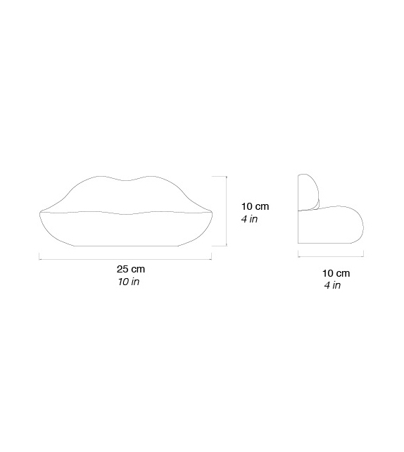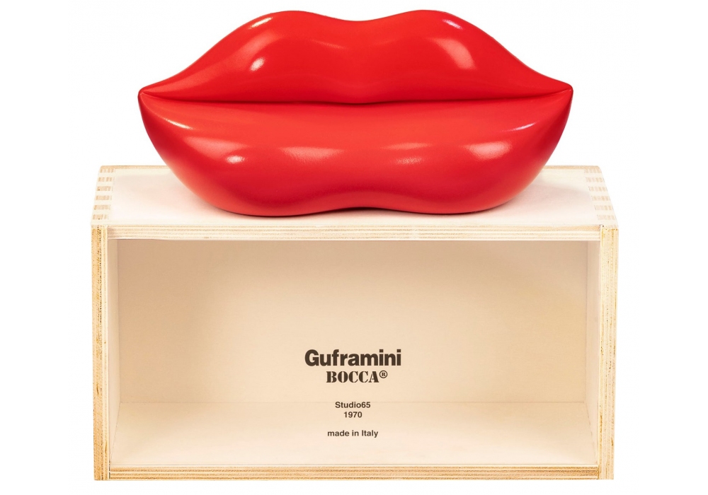 Bocca von Studio 65 für Guframini entworfen, ist eine mundförmige Miniatur aus weichem Polyurethan, die die exakten Proportionen der Originalversion beibehält, aber im Gegensatz zu ihrer großen Schwester hat sie sich entschieden, ihr Stoffkleid loszuwerden.