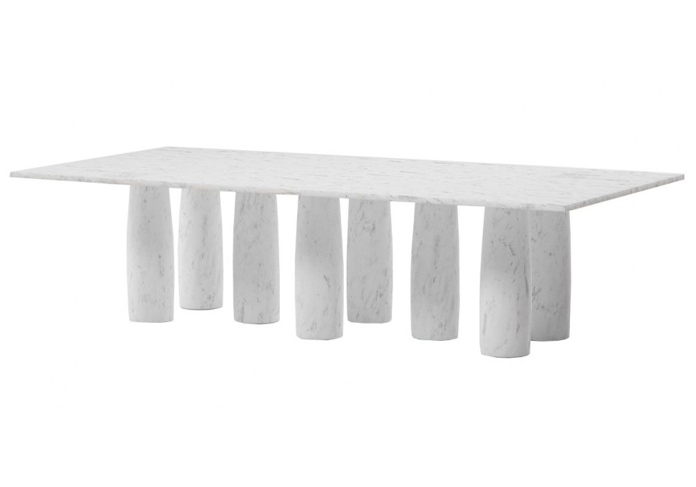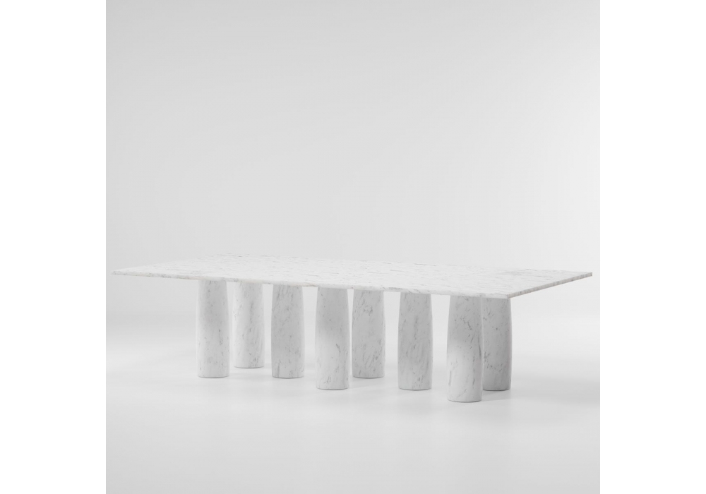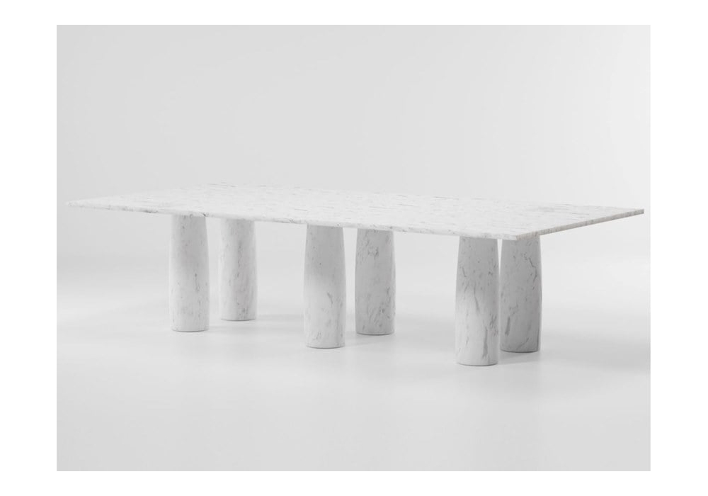 Il Colonnato von Mario Bellini für Kettal entworfen, ist ein rechteckiger Tisch aus Marmor mit zylindrischen Beinen.