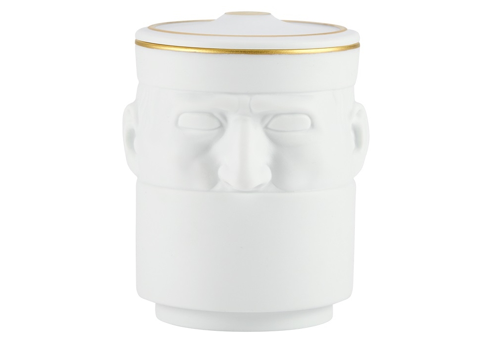 LCDC Il Seguace Pure White von Luca Nichetto für Ginori 1735 entworfen, ist ein nachfüllbarer Kerzenhalter aus Porzellan mit einem Set von 190 g Black Stone Duftkerzen mit Deckel.