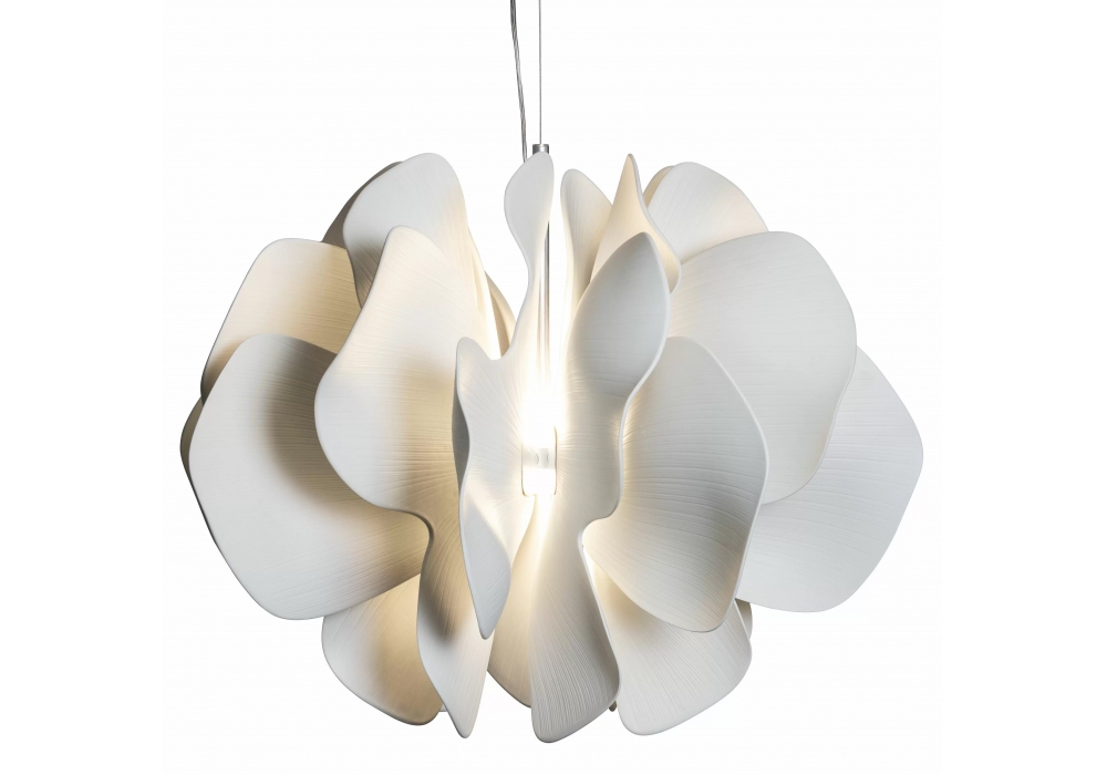 Nightbloom wurde von Dept. Diseño y Decoración entworfen und von Marcel Wanders für Lladró entworfen und ist eine Hängeleuchte. Der Diffusorkörper besteht aus einer Reihe handgefertigter Porzellanblätter.
