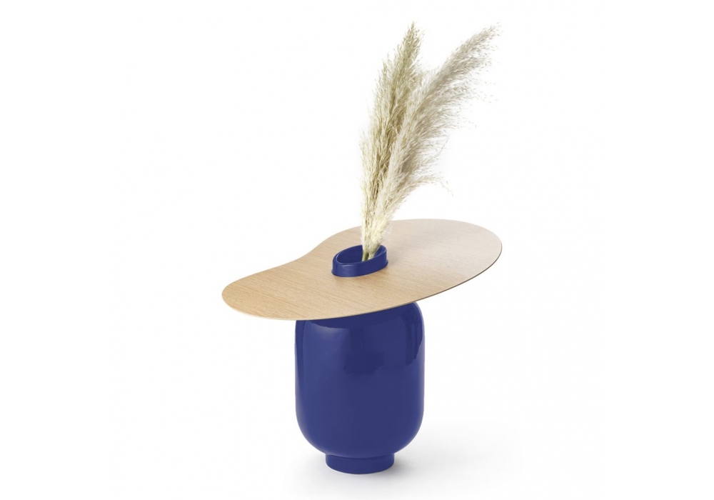 Margot L, von Thomas Dariel für Maison Dada entworfen, ist eine zylindrische Keramikvase mit einem abstrakt geformten Edelstahlkragen.